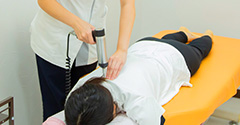 痛みのある部分だけを対処するのではなく、その原因にアプローチし、身体機能そのものを立て直すことで、再発しにくく、疲れにくい体を目指します。まず骨格の歪みには、トムソンテクニックという特殊なベッドを使用したソフトな矯正を行います。無理なく骨盤や背骨のバランスを整えることで、身体の土台を安定させていきます。