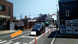 2.「南栄駅」の改札を出てすぐ右に踏み切りがあるので、渡って下さい。